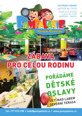 otevřeno denně od 9:00 do 19:00 Každé první pondělí v měsíci do 13:00 zavřeno - SANITA ZÁBAVA PRO CELOU RODINU pořádáme dětské oslavy ússetvíenrandí tlearbaesma Tel: 777 933 398 I info@pampalanie.cz I www.pampalanie.cz